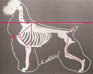 IMPORTANT PROPORTIONS : The measurement from the breast bone to back of thigh is slightly longer than the measurement from the highest point of withers to the ground. The body must be of sufficient length to permit a straight and free stride; the dog never appears long and low.